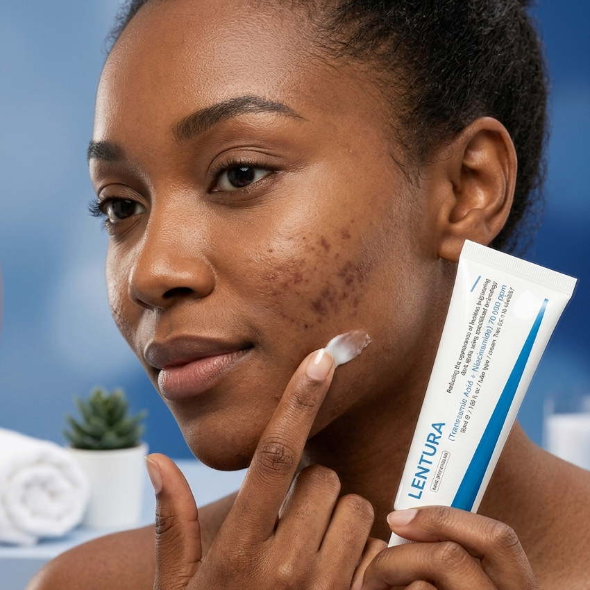 Niacinamide (5%): The "Barrier Builder." It stops the transfer of pigment to skin cells while strengthening your natural moisture shield.